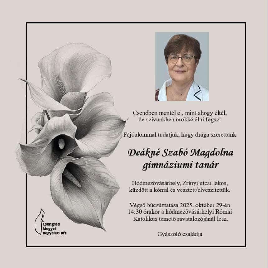 Deákné Szabó Magdolna tanárnőtől iskolánk egykori magyar, német és orosz szakos pedagógusától, aki 1969-ben érettségizett bethlenes diákként.
